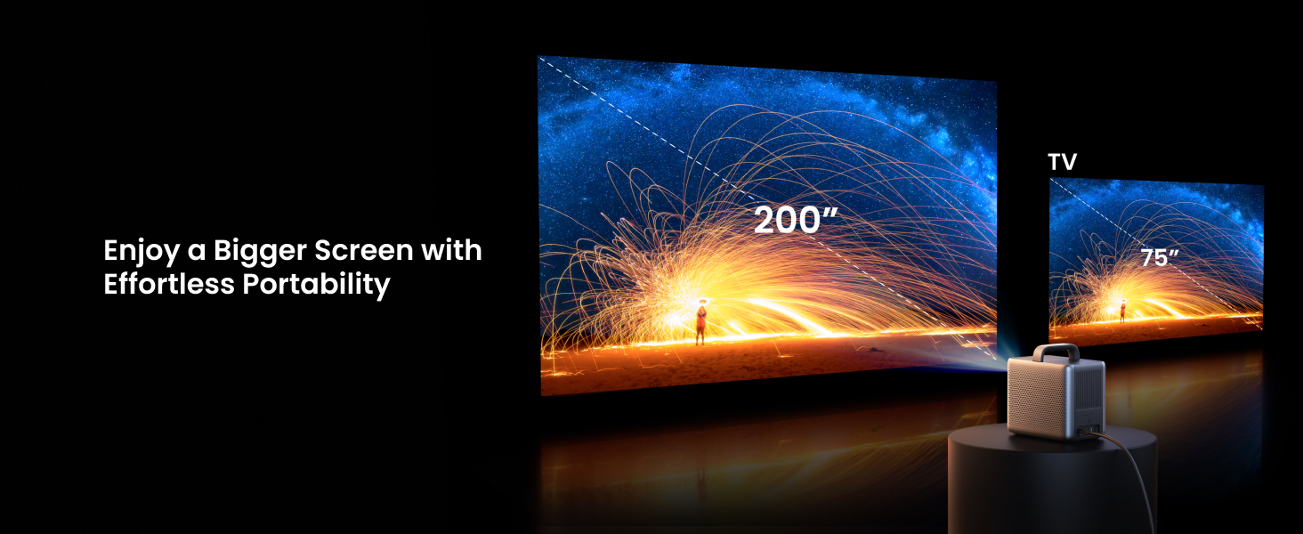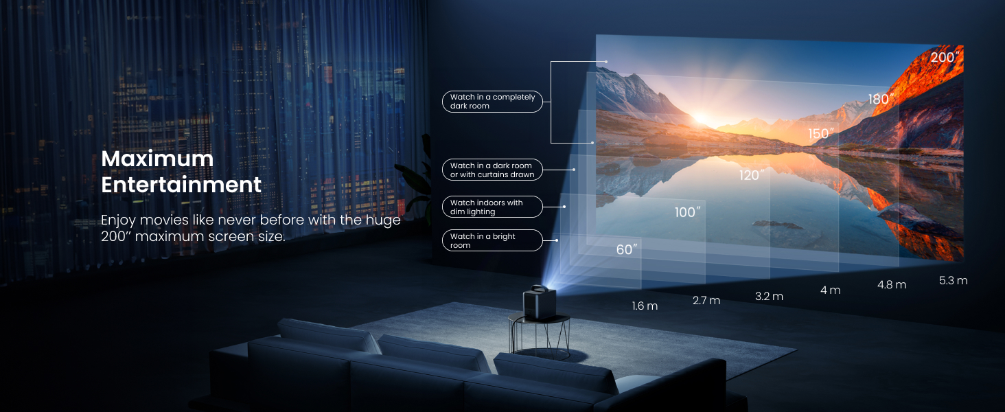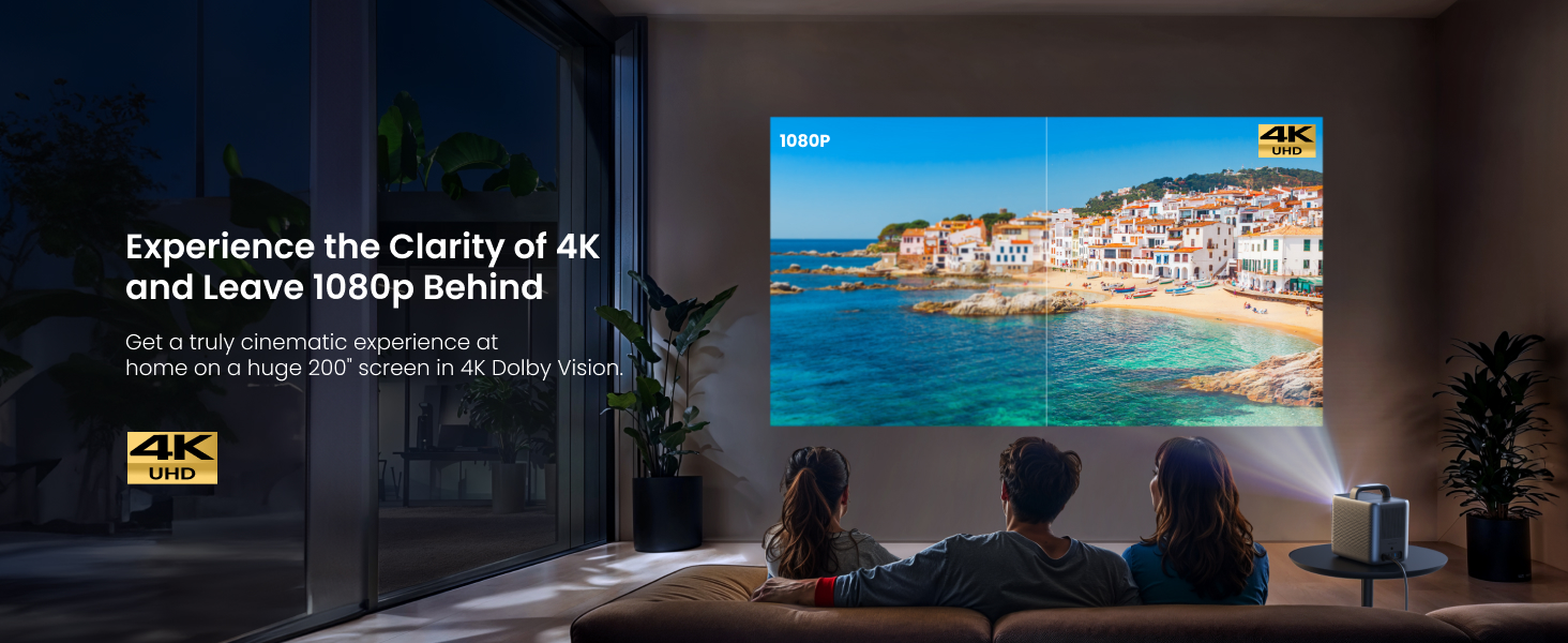 - 4K Dolby Vision, Huge 200" Screen: Enjoy stunning 4K visuals, 40x higher brightness, 50x better contrast, and true-to-life colors with Dolby Vision. Features a 200" max screen size for a truly cinematic experience.