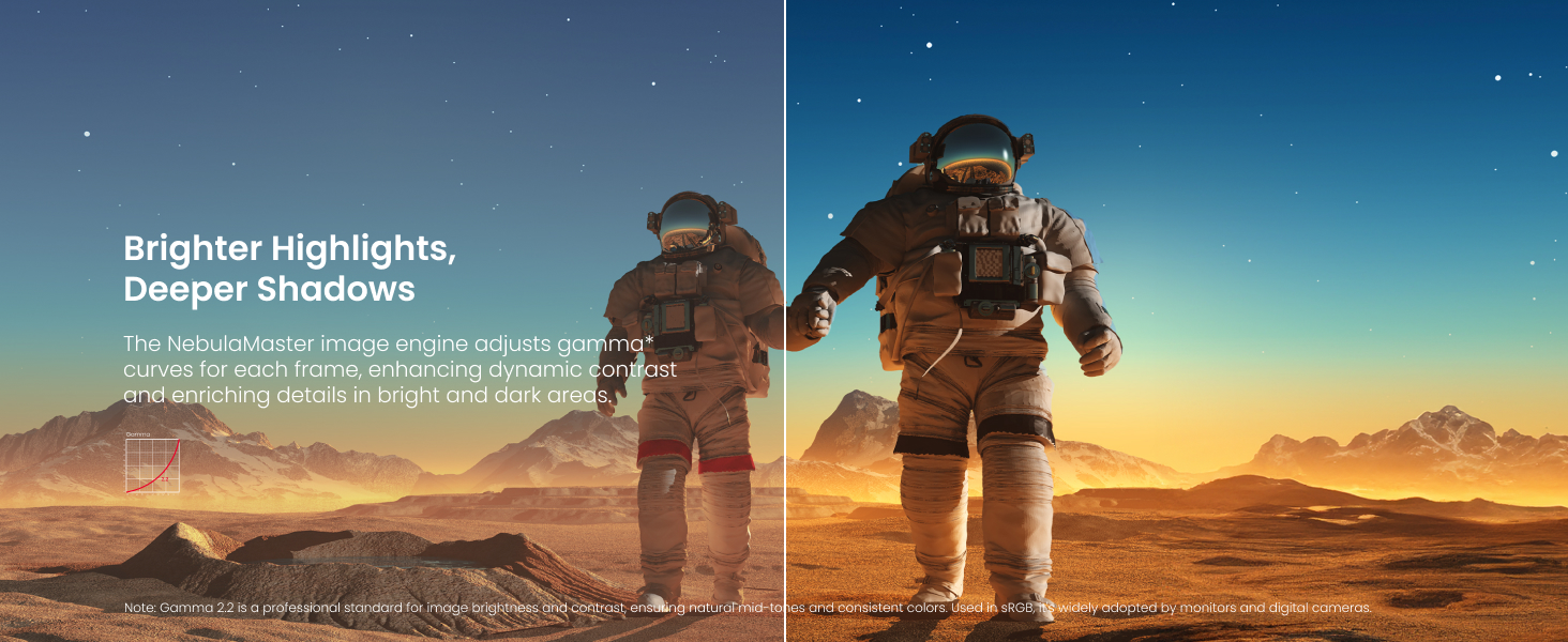 - NebulaMaster™ Image Engine: Experience true-to-Life visuals in every frame,enhanced contrast, optimized grayscale and color accuracy, and smoother visuals.