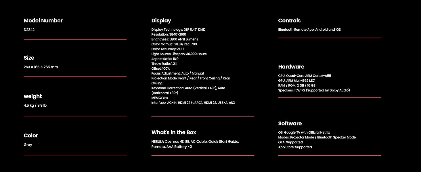 Cosmos 4K SE | Dolby Vision Projector with Google TV