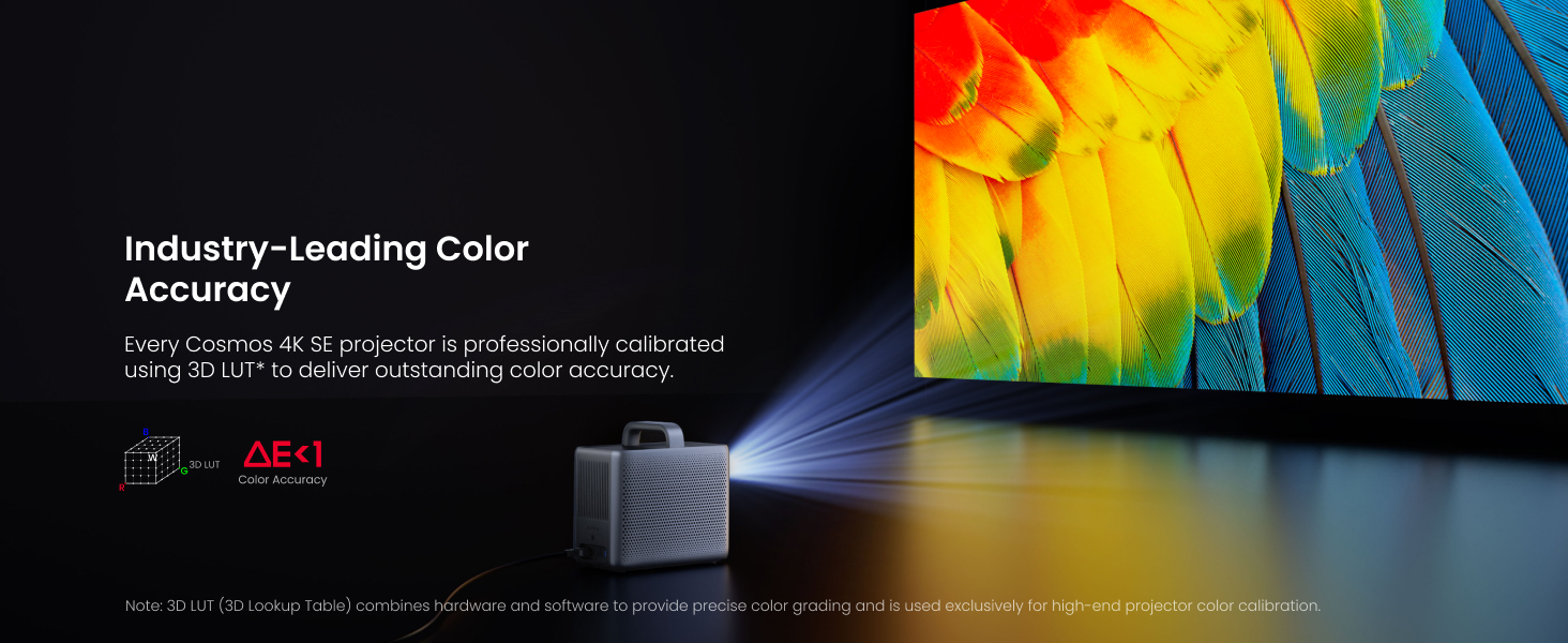 - IEA 4.0 Intelligent Setup: Cosmos 4K SE smartly adapts to your space using real-time autofocus and keystone correction, automatic obstacle avoidance and screen fit, wall color adaptation, ambient light adaptation, and more.