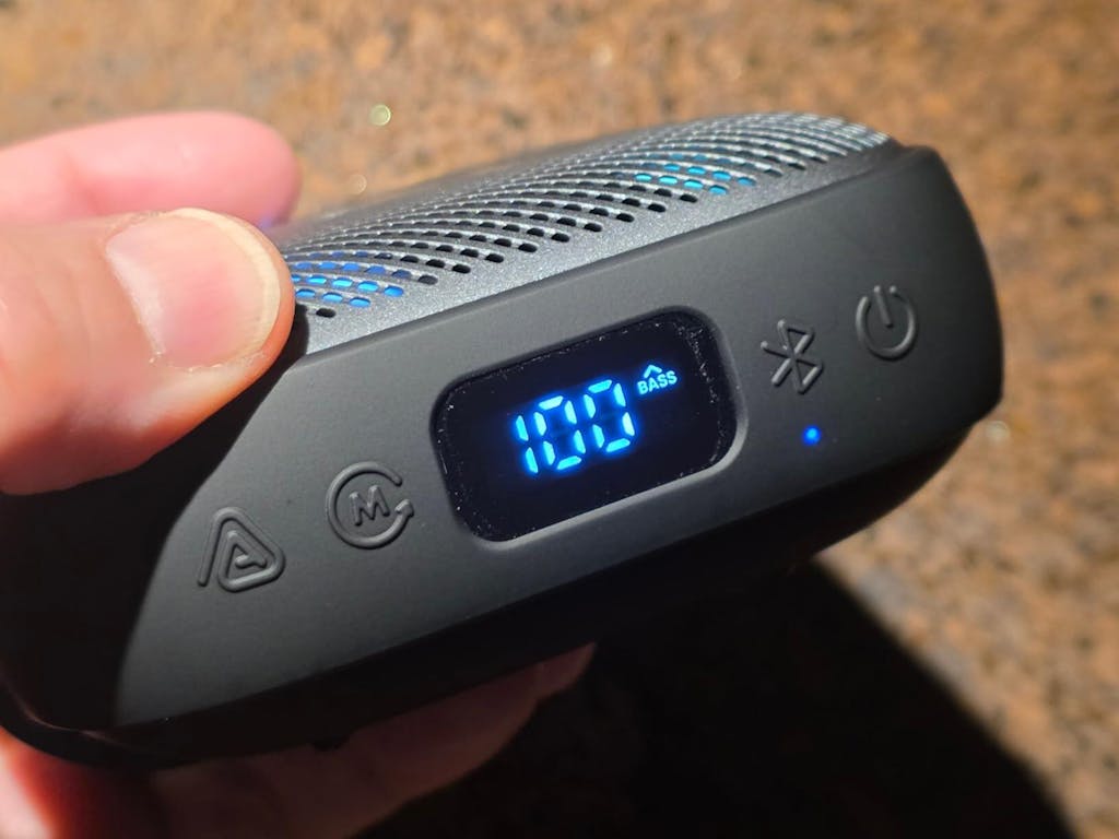 24-Hour Battery with Battery Display: This portable speaker delivers 24 hours playtime on a single charge—perfect for outdoor activities from sunrise to sunset. Plus, the real-time power display shows the exact battery level so you never get caught off guard by low power.