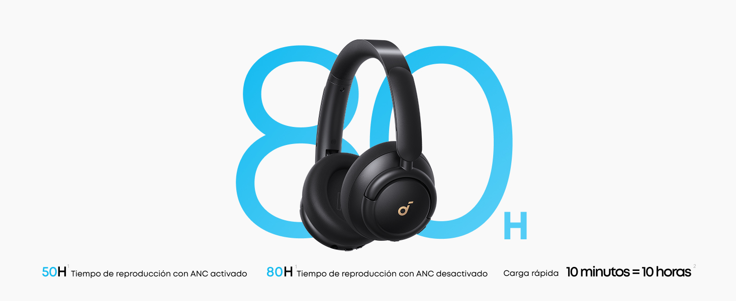 | Tiempo de Reproducción | 60H (ANC off), 40H (ANC on) | 55H (ANC off), 40H (ANC on) | 60H (ANC off), 40H (ANC on) | 65H (ANC off), 50H (ANC on) | 60H | 60H (ANC off), 40H (ANC on) | 70H |