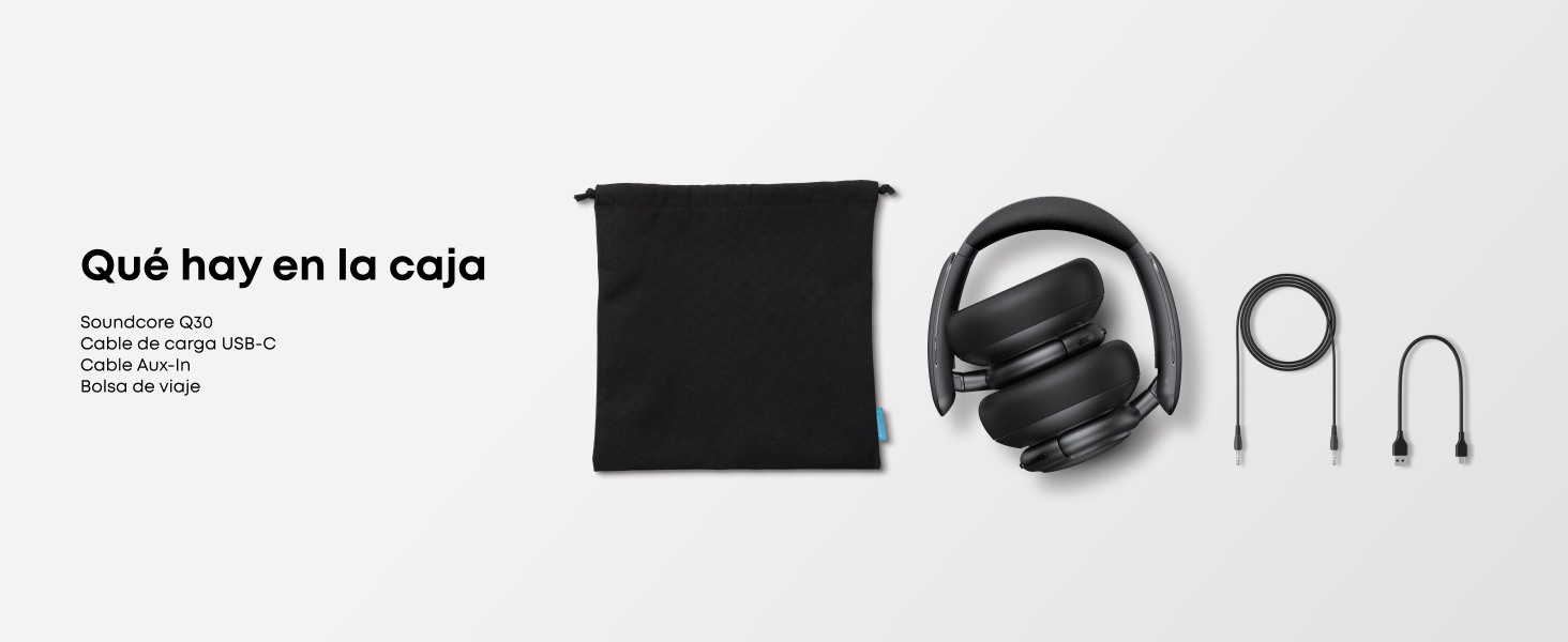 - Experiencia de cancelación de ruido óptima: disfruta de una cancelación de ruido personalizada con los 3 modos de los auriculares soundcore Q30. El modo Transporte minimiza el ruido de los motores del avión, el modo Exteriores reduce los ruidos del tráfico y el viento y el modo Interiores amortigua los sonidos de las oficinas ajetreadas y las conversaciones de fondo.