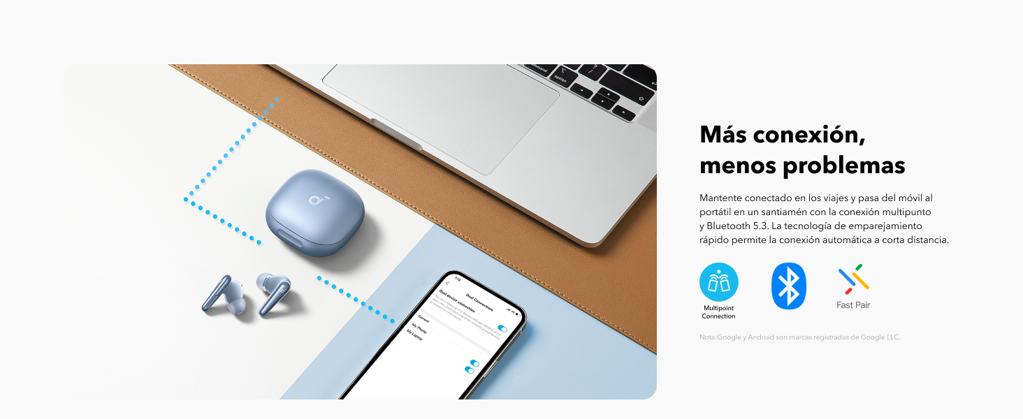 - Reducción Adaptativa del Ruido en Tiempo Real: Estos auriculares inalámbricos con cancelación de ruido se adaptan a tu entorno cambiante cada 0,3 segundos, garantizando una reducción del ruido óptima e impecable.