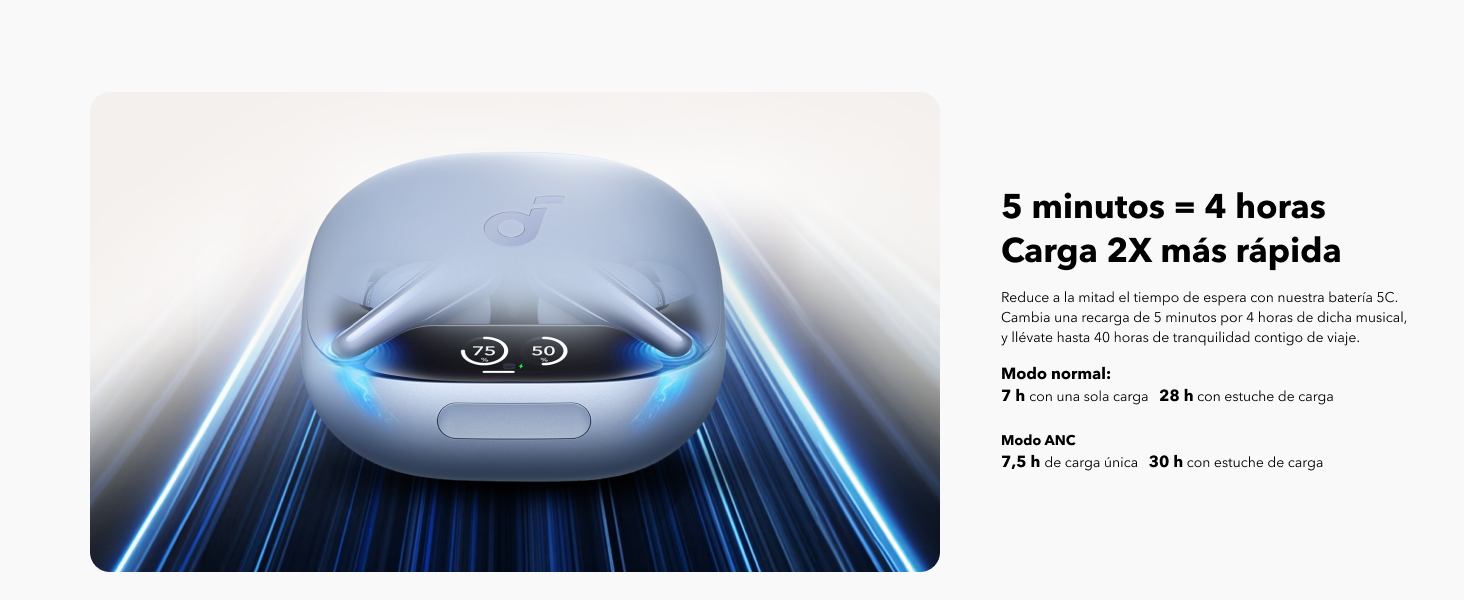 - Carga superrápida: Los auriculares con cancelación de ruido Liberty 4 Pro se cargan 2 veces más rápido que los modelos anteriores con la batería 5C. Disfruta de hasta 10 horas entre cargas, ampliables a 40 horas con el estuche.