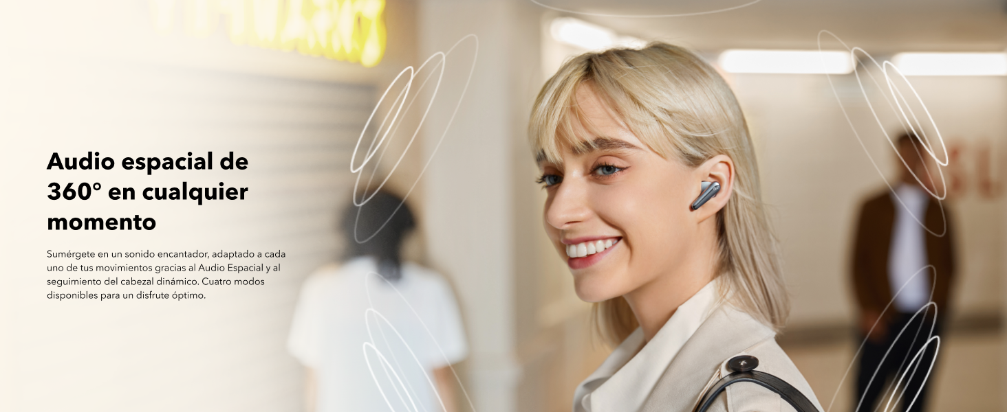 - Cancelación de ruido inigualable: Los auriculares con cancelación de ruido Liberty 4 Pro cuentan con 7 sensores -6 de sonido y 1 de presión barométrica- para captar el ruido desde todos los ángulos.