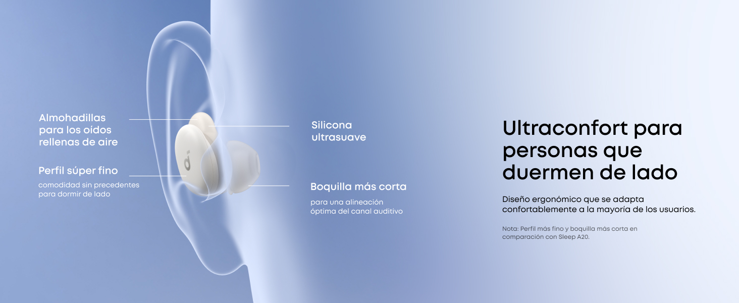 Comodidad durante toda la noche para dormir de lado: cuenta con silicona ultrasuave, boquillas cortas y un perfil ligero y delgado para aliviar la presión al dormir de lado. Utilizando un mapeo 3D de miles de conductos auditivos, tiene una forma ergonómica que se adapta cómodamente a la mayoría de los oídos.