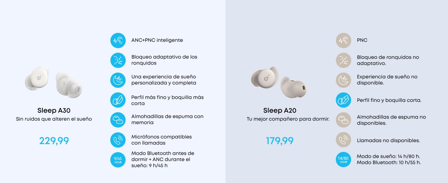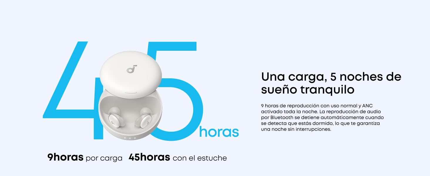 Cancelación de ruido al dormir con ANC: la tecnología Smart ANC bloquea eficazmente los ronquidos, los ruidos de las mascotas, el zumbido de los electrodomésticos y el ruido del tráfico exterior.