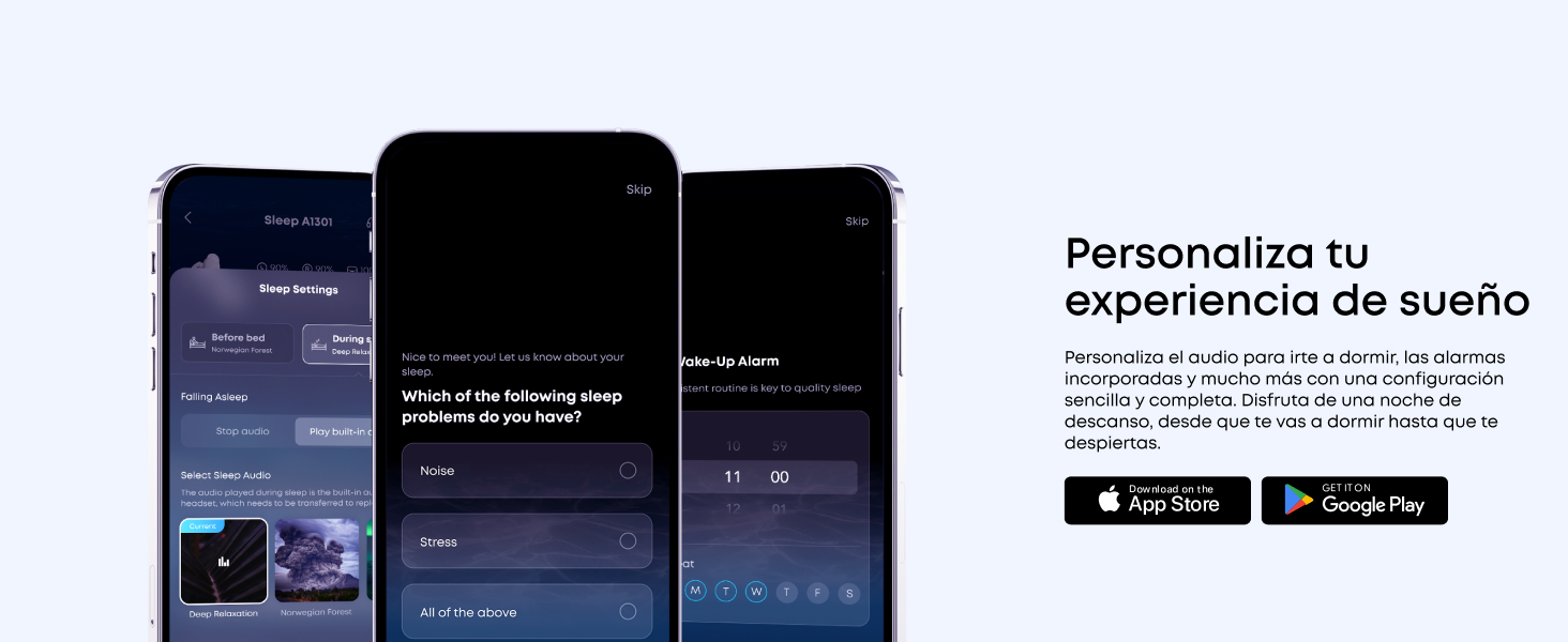 Tu solución personalizada para dormir: Personaliza tu audio para la hora de acostarte, los recordatorios para dormir, las alarmas integradas y mucho más con una configuración fácil y todo en uno para una noche de descanso, tal y como te gusta.