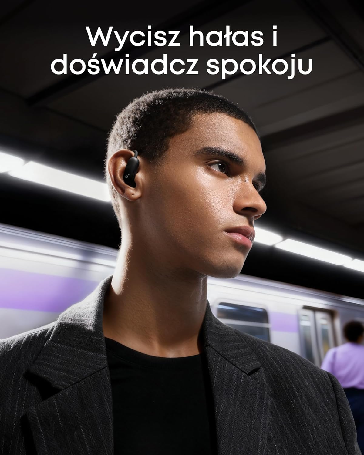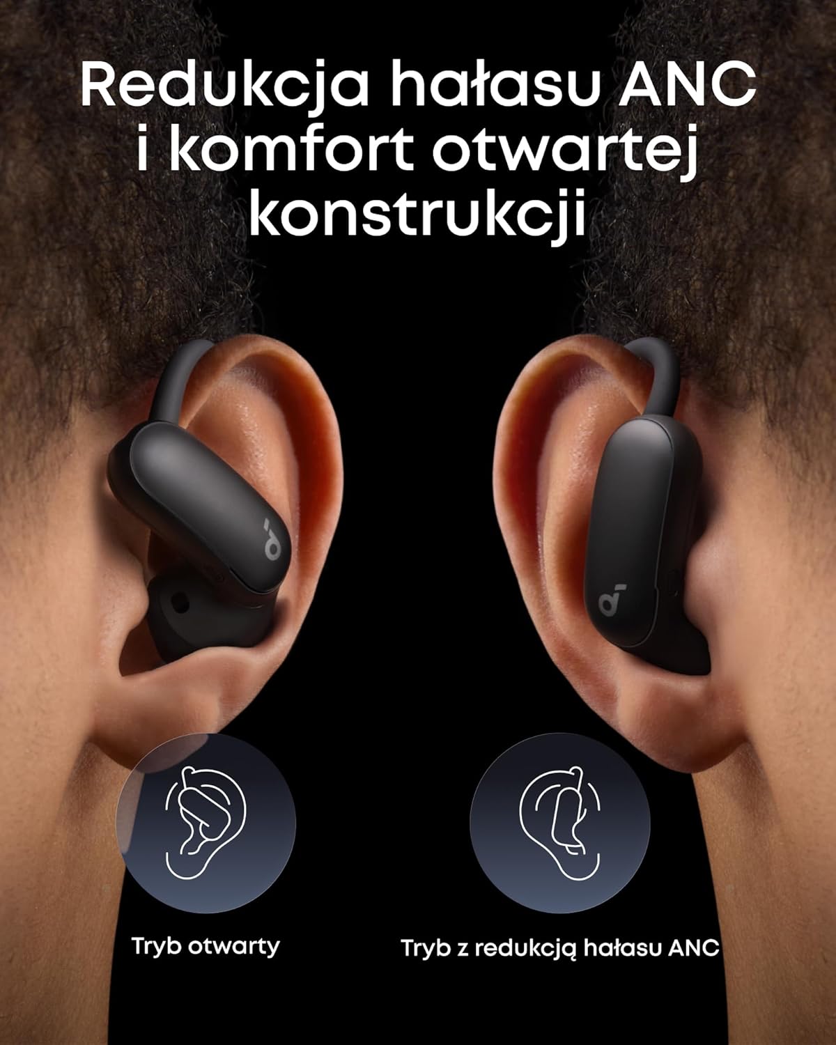Konstrukcja typu open-ear w połączeniu z adaptacyjnym systemem ANC zapewnia komfort słuchania przez cały dzień w każdych warunkach.