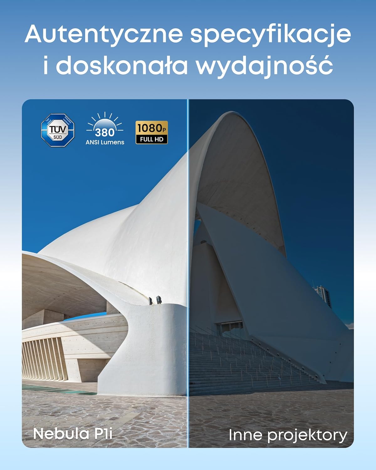 - Prawdziwa jasność, prawdziwa klarowność: Ciesz się realistycznymi szczegółami dzięki certyfikowanej przez TÜV jasności 380 lumenów ANSI i rozdzielczości Full HD 1080p, które sprawiają, że każdy wieczór filmowy jest wyjątkowy.