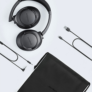 In the box you’ll find a travel pouch to conveniently store Life Q20 Bluetooth headphones in, a 3.5 mm AUX cable to keep the music playing when you’re low on battery, and a Micro USB cable to charge them with.