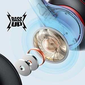 - Bass up: our exclusive bass up technology analyzes your Audio’s low frequencies in real-time and instantly increases the Bass. Combined with oversized 40mm dynamic drivers, bass power is boosted up to 100%. a button on the right ear cup of the wireless over ear headphones activates bass up.