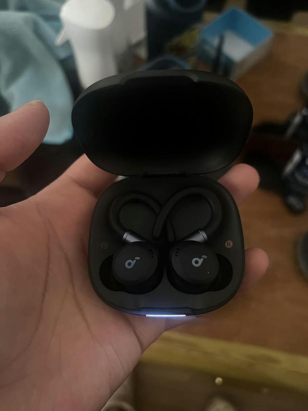 - Place the earbuds in the charging case and leave the case open.