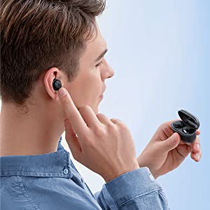 2. Hold on the button of the earbuds for 3 seconds to power on.