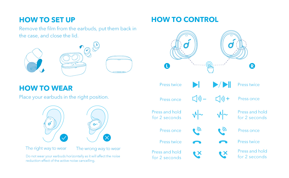 Note: In a noisy environment and at high volume, you may feel that the noise cancellation performance is not as strong.