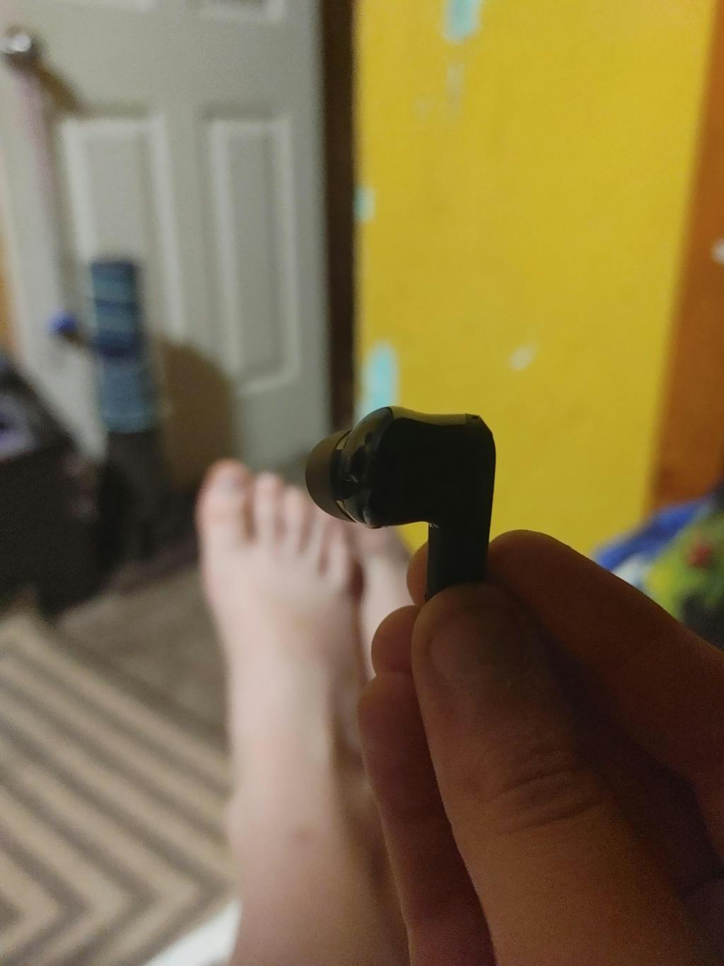 2. Hold on the button of the earbuds for 3 seconds to power on.