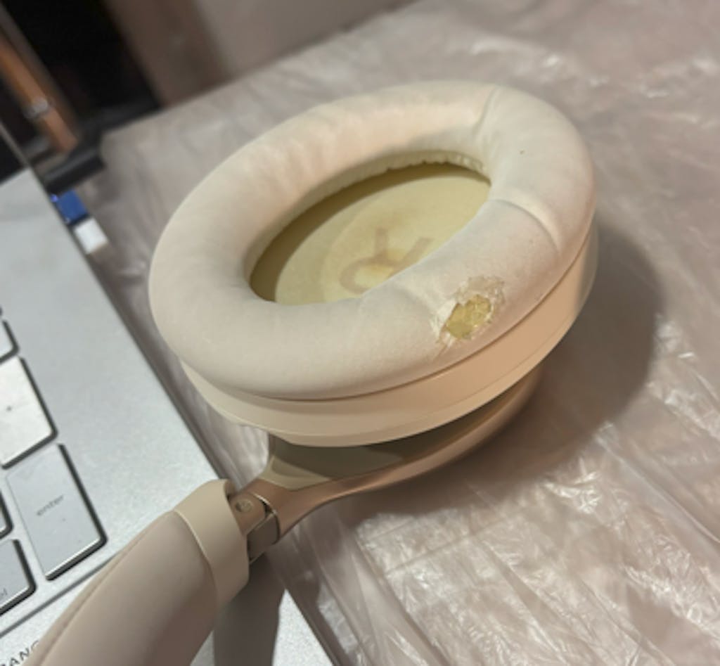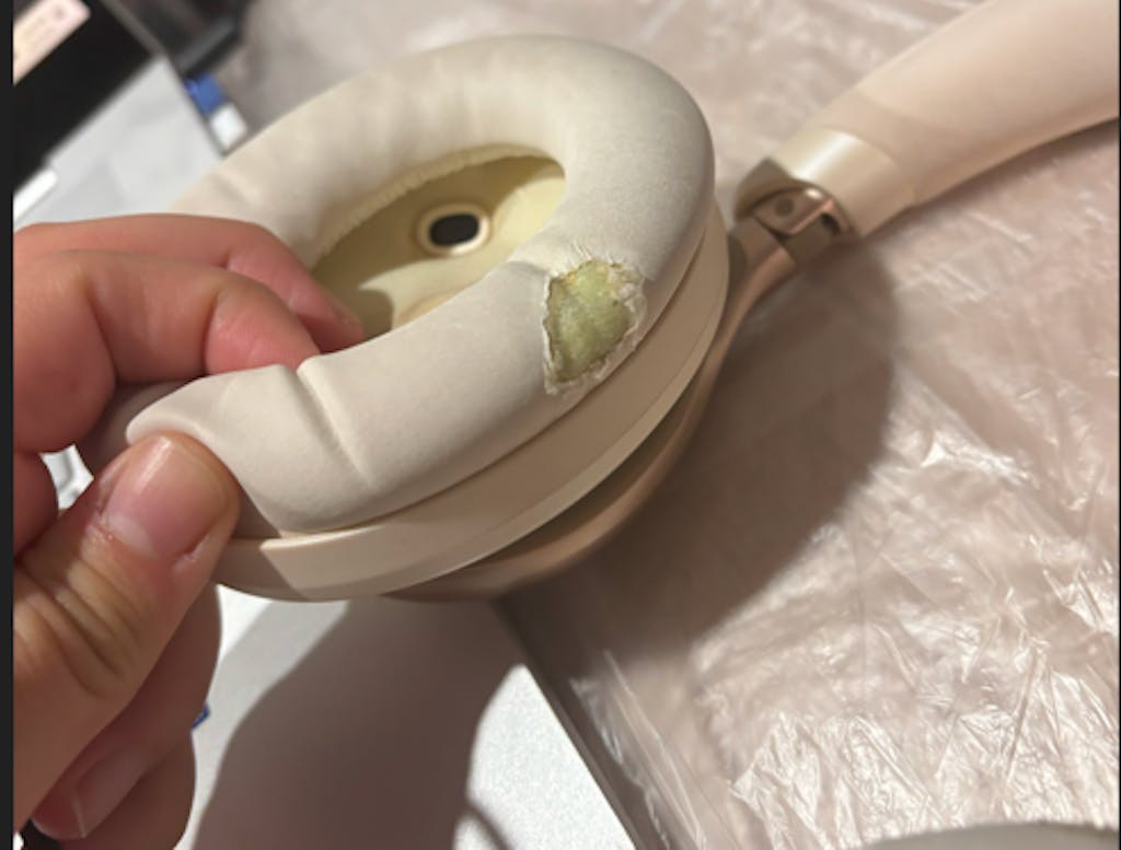 6. If the sensor mirror inside the left earcup is dirty or has condensation, it may not work properly. Please use a cotton swab dipped in alcohol to gently wipe it until the dirt and condensation disappear. Please do not wipe it forcefully to avoid scratching the lens and affecting the recognition accuracy.