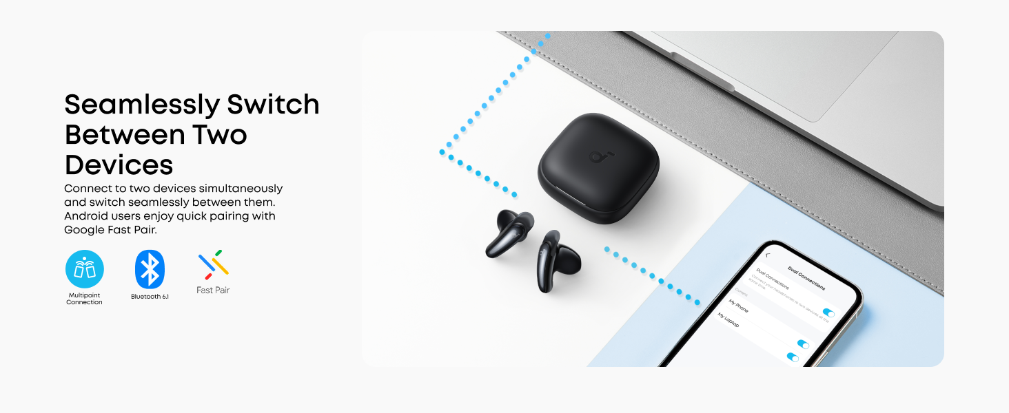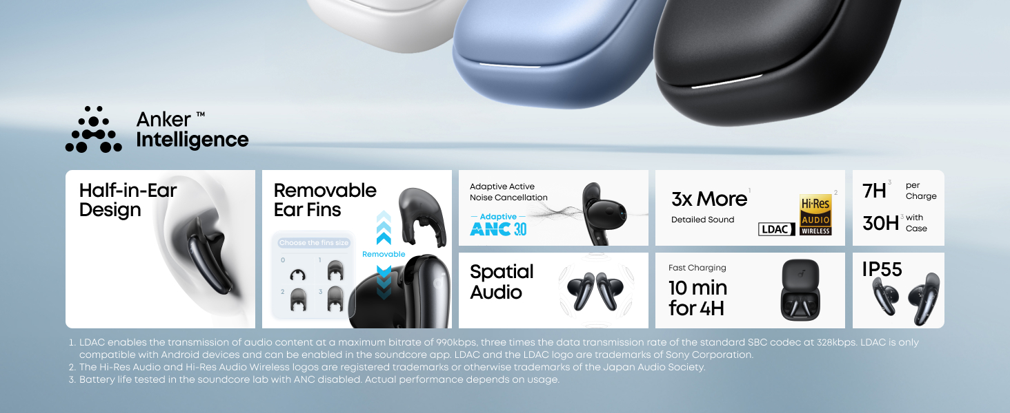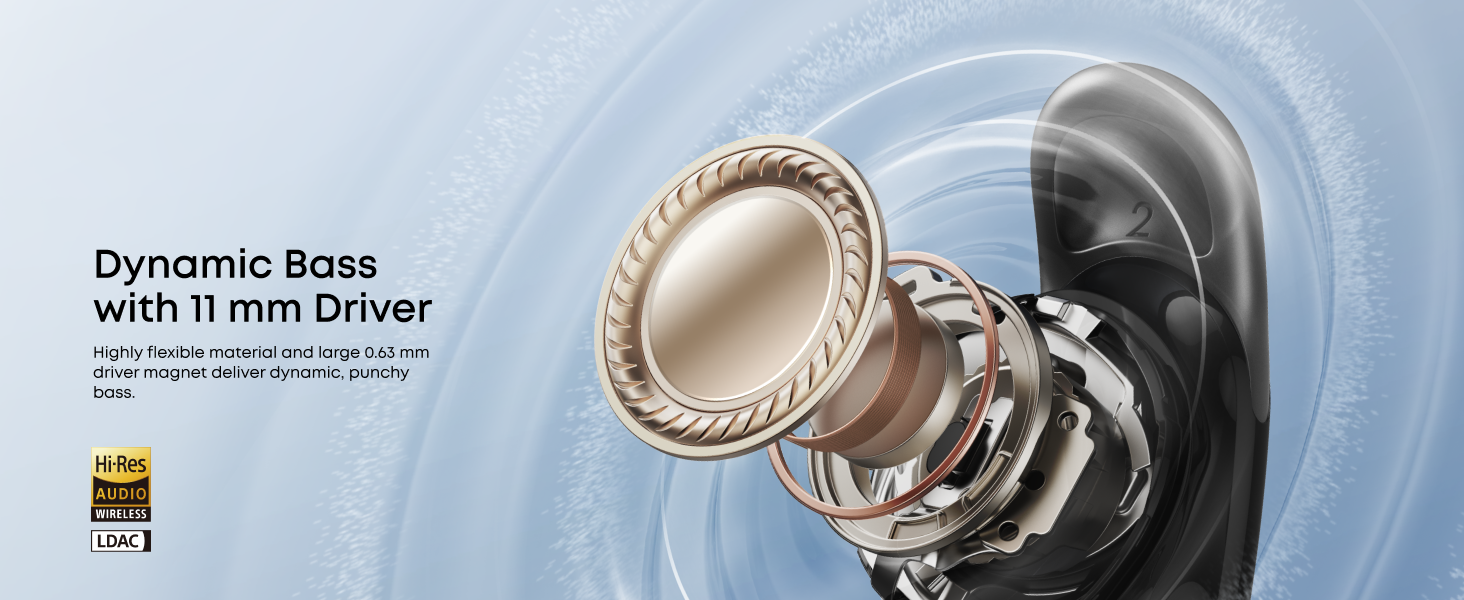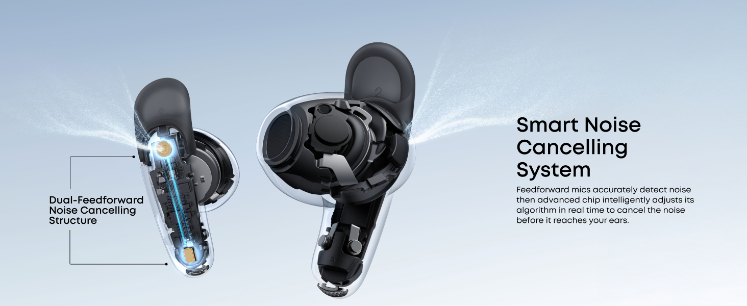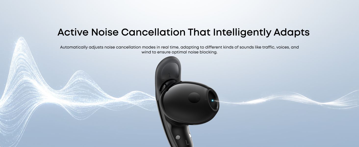 - Adaptive Active Noise Cancellation: The earbuds monitor your surroundings in real time, detecting sounds like traffic, voices, and wind then automatically adjust the mode and level of noise cancellation for optimal noise blocking.